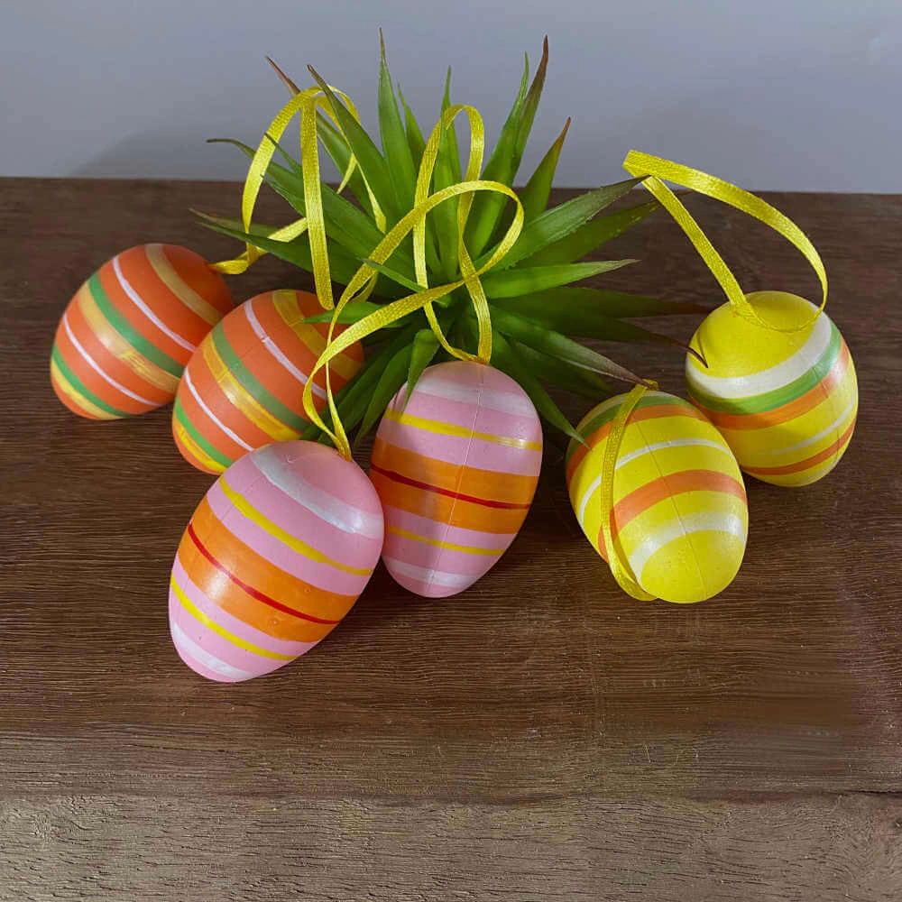 Dimensões: ovos de 6 cm, semelhante a ovos de galinha.