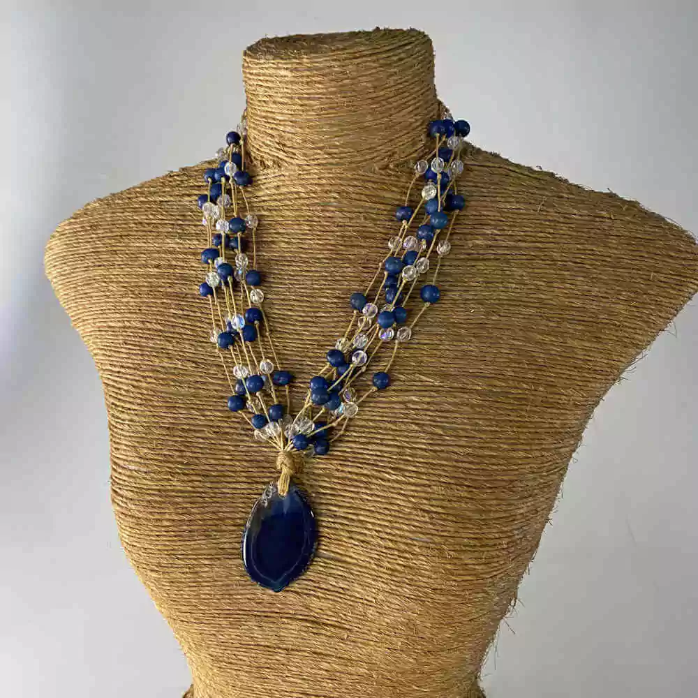 Destaque para o pingente de ágata em tom de azul.