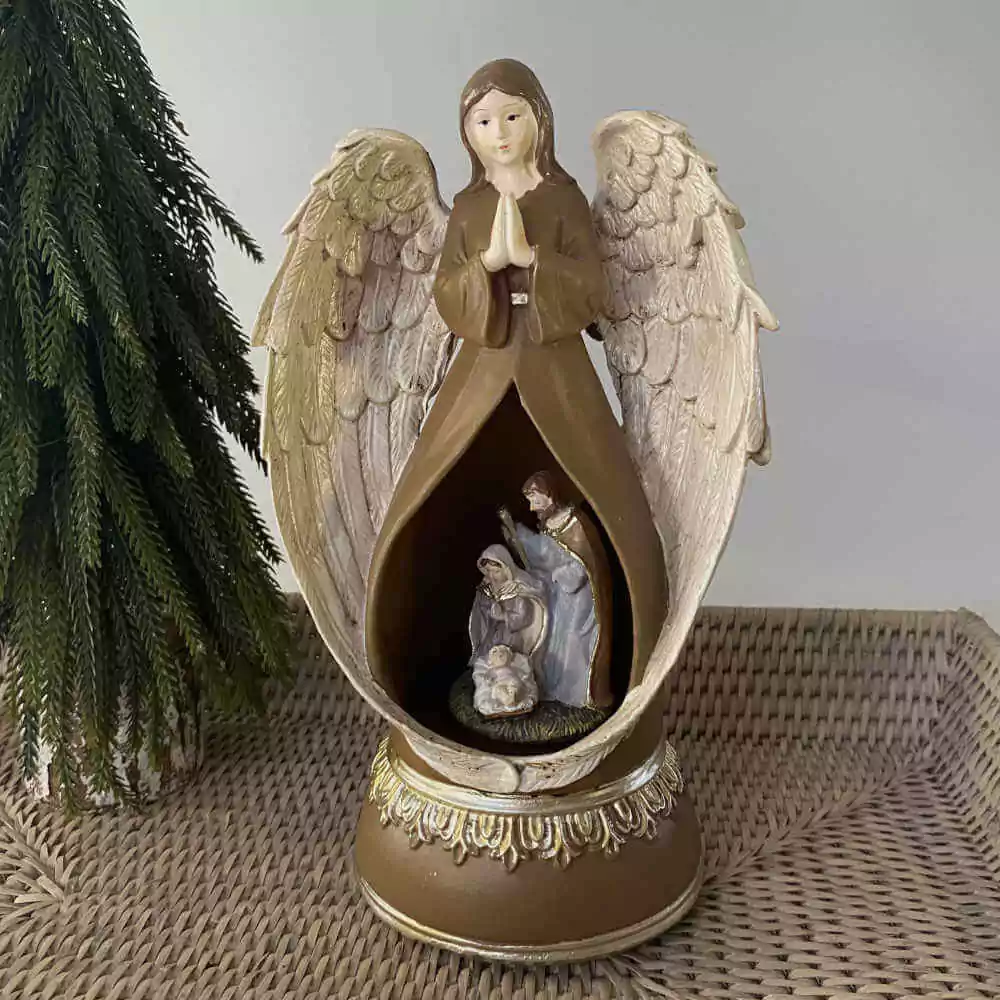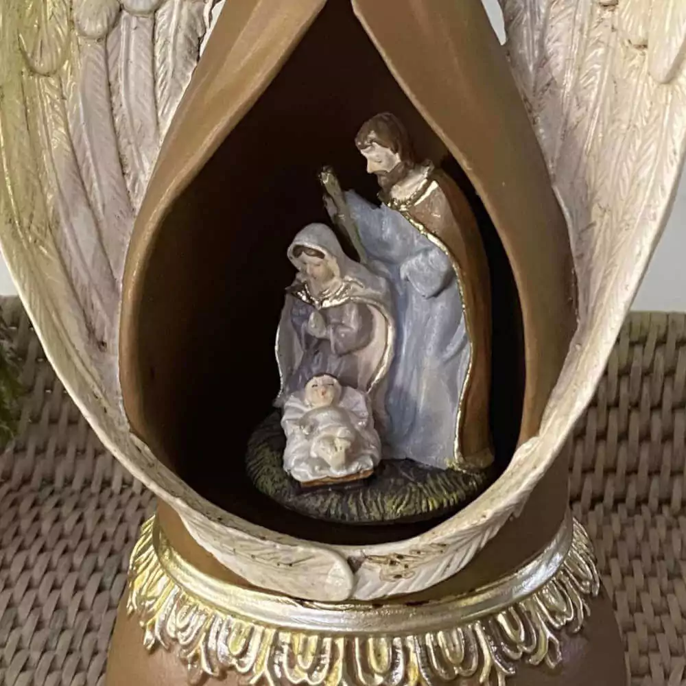 Uma peça delicada, feita em resina com caixa de música movida a corda.