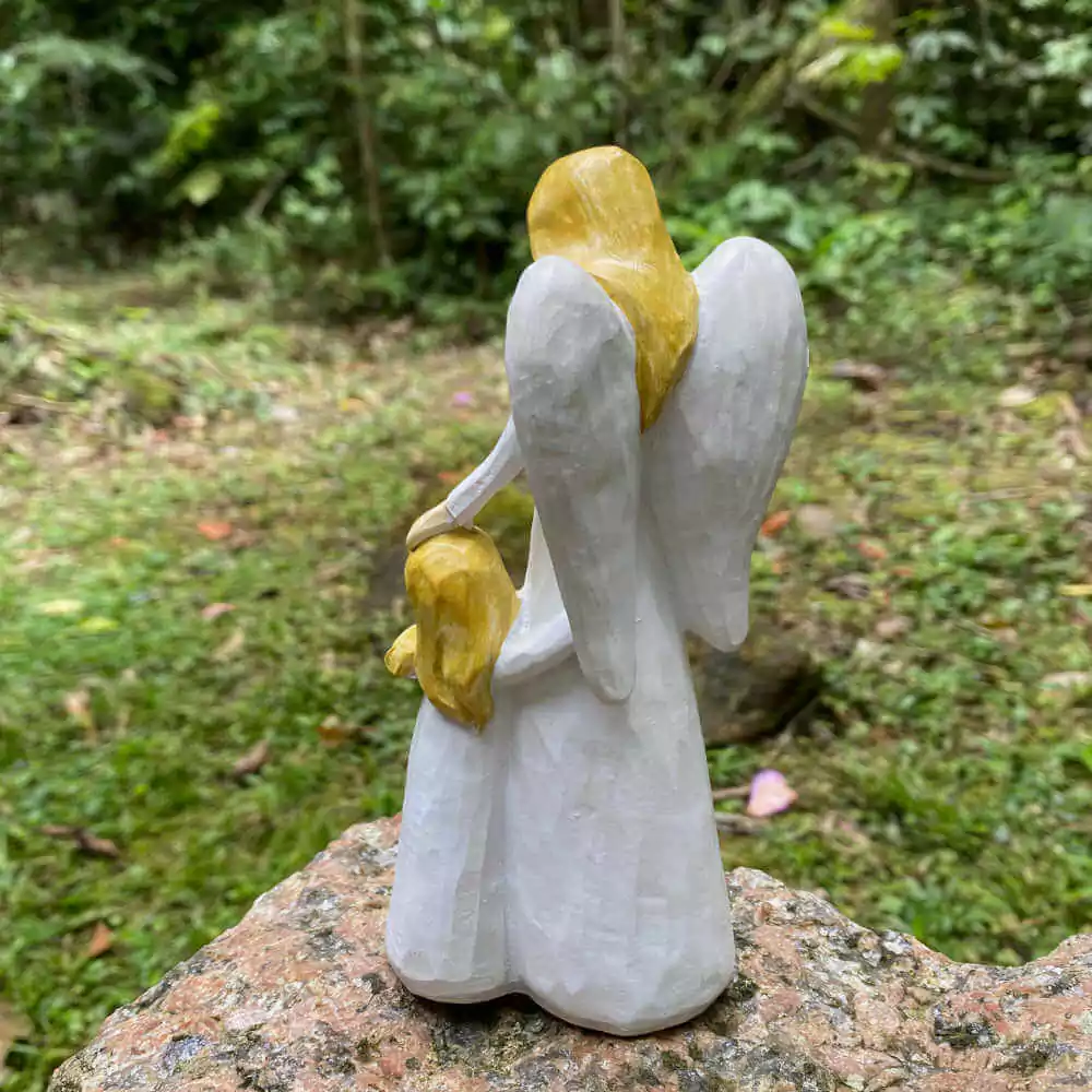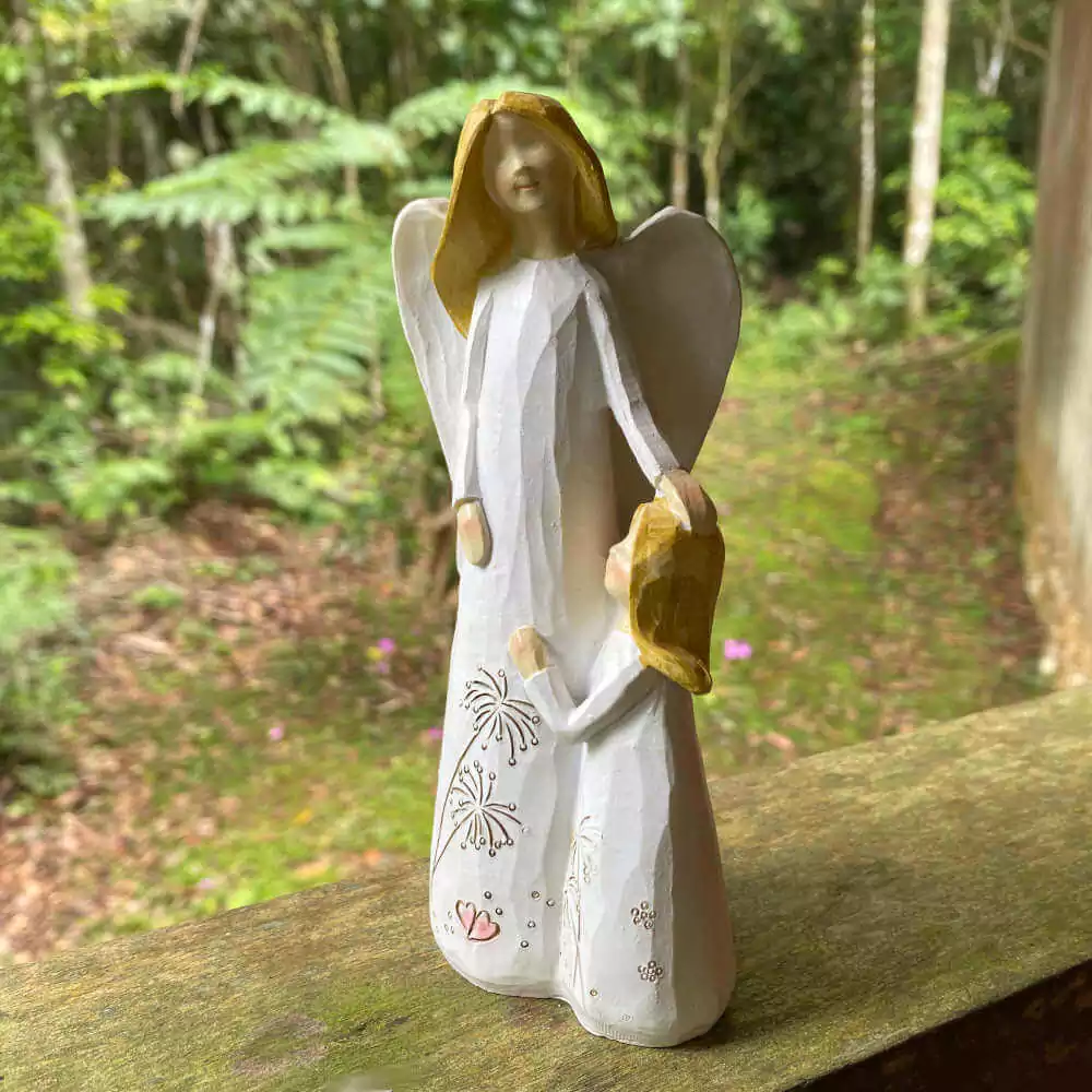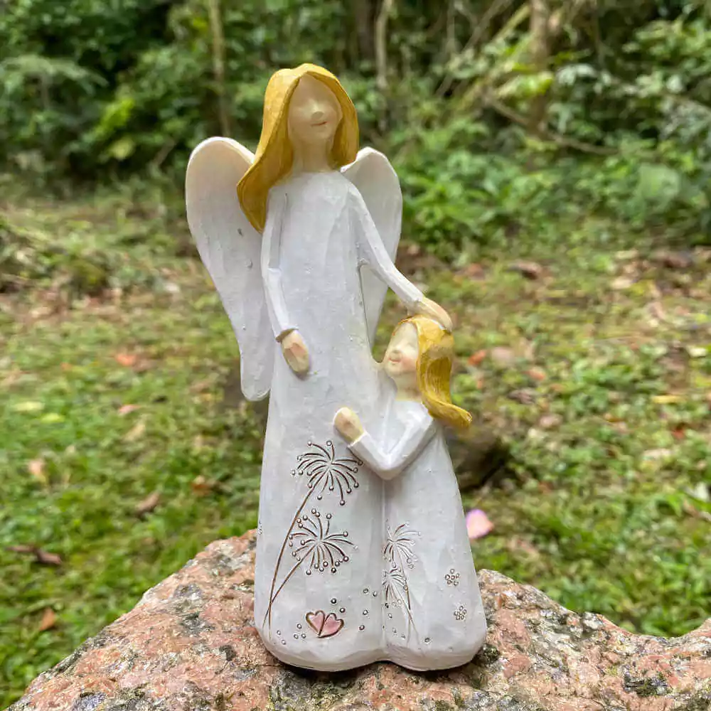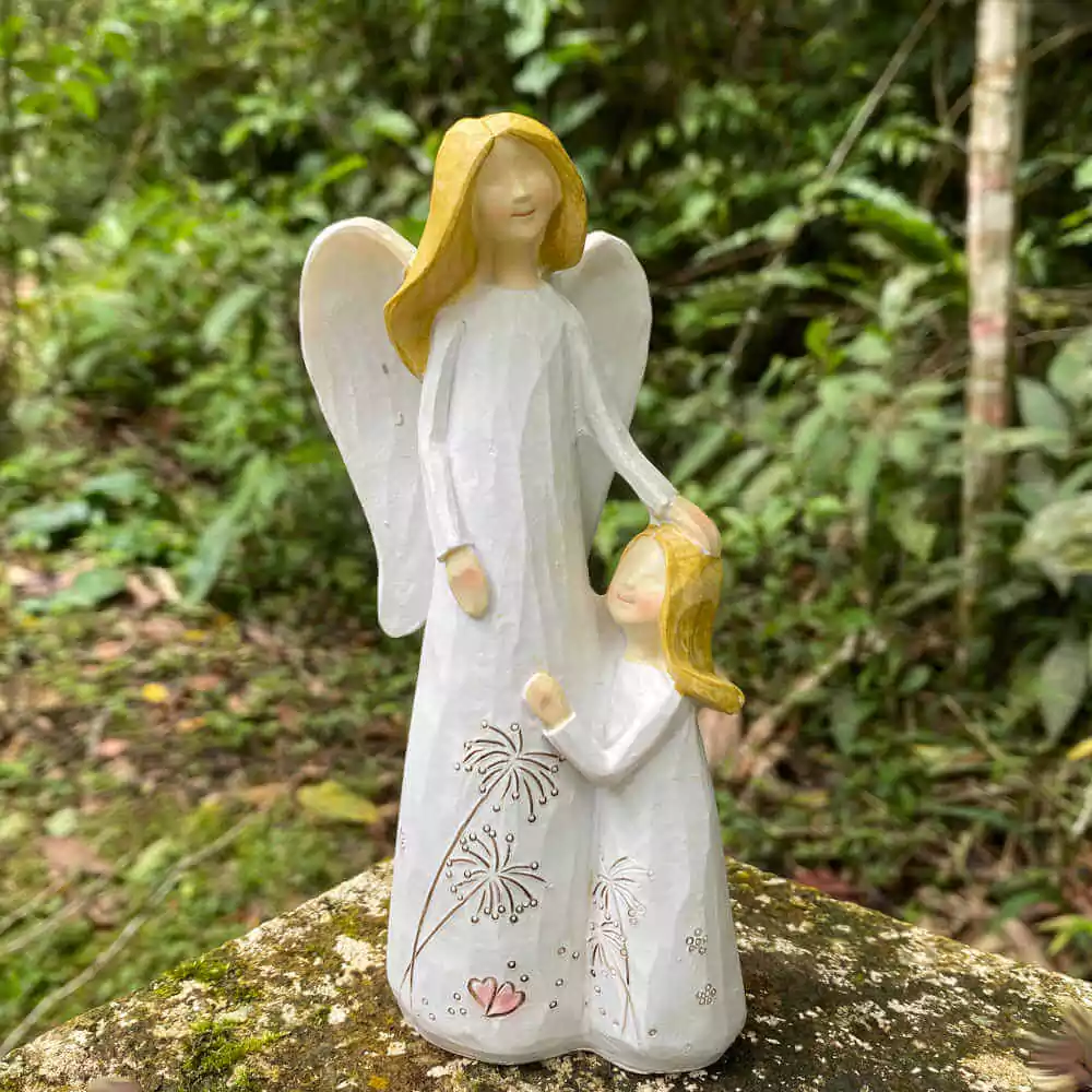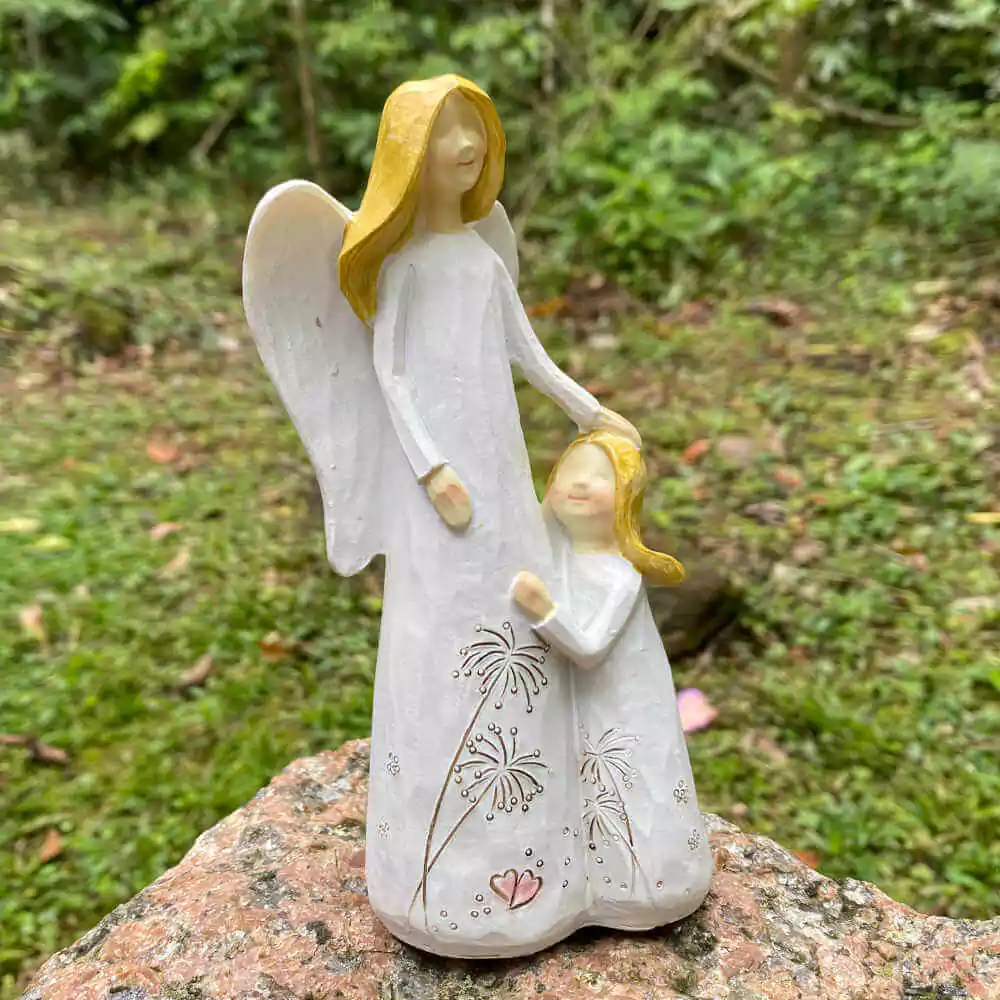 Um lindo presente para uma menina, anjo da guarda segurando a mão de uma menina.