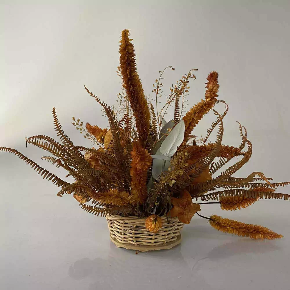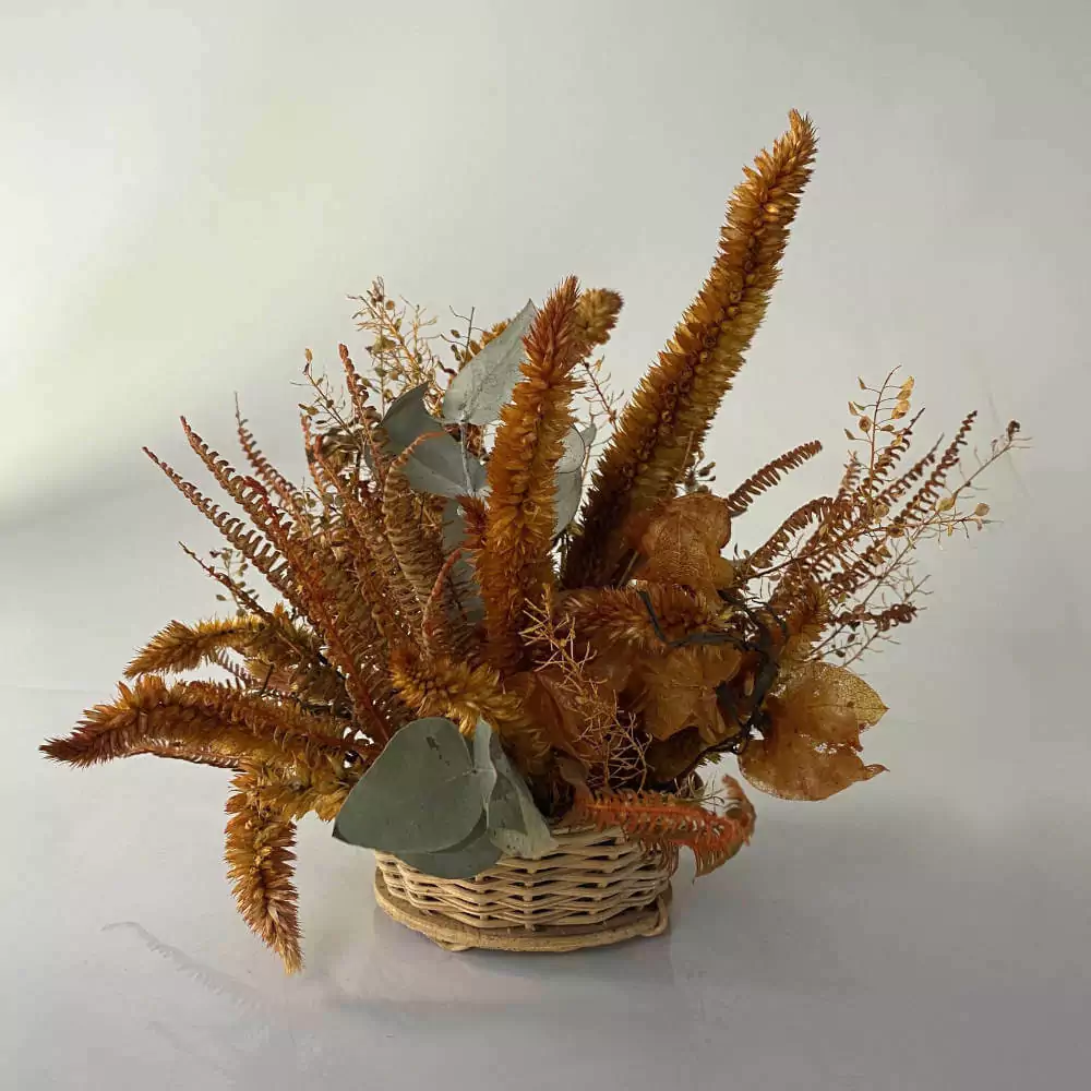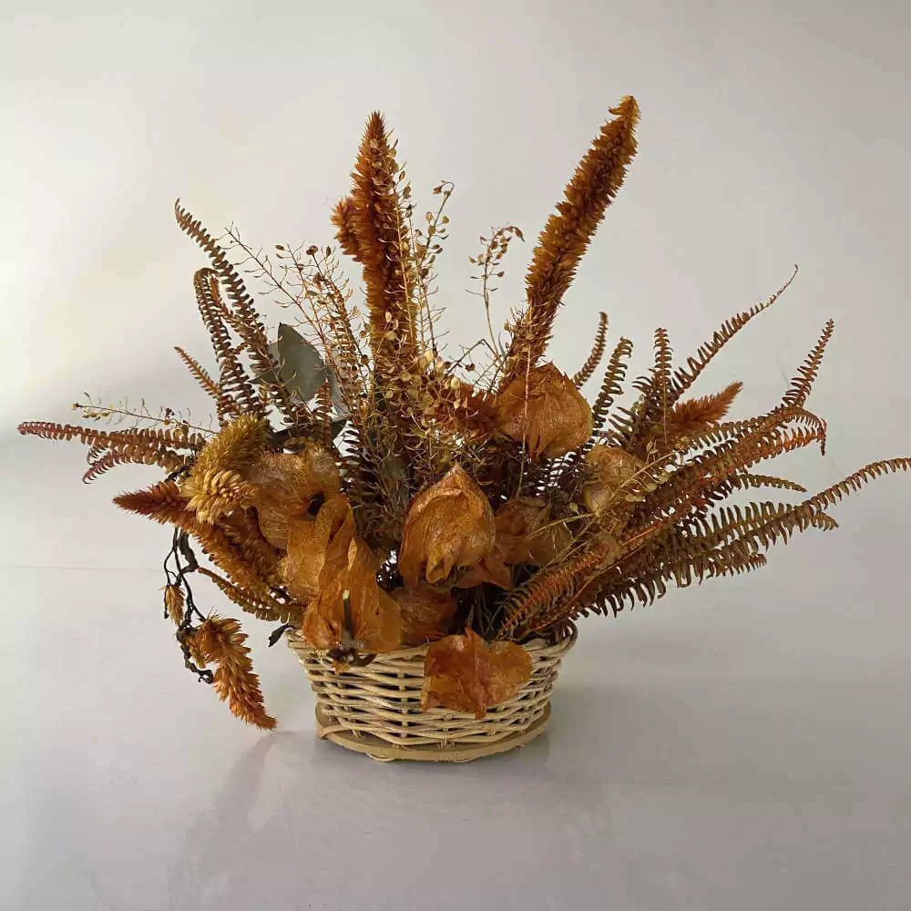 Material: cesta de vime, flores secas e desidratadas variadas.