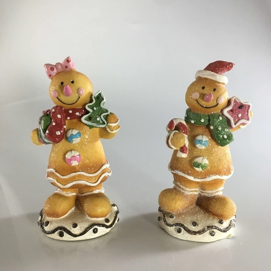 Estes dois simpáticos bonequinhos de biscoitos natalinos são feitos em resina, com pintura colorida, acabamento divertido e expressão encantadora, perfeitos para levar o espírito do Natal com leveza e alegria aos ambientes.