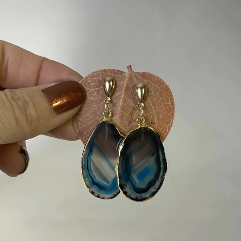 Brinco de ágata na cor azul.
