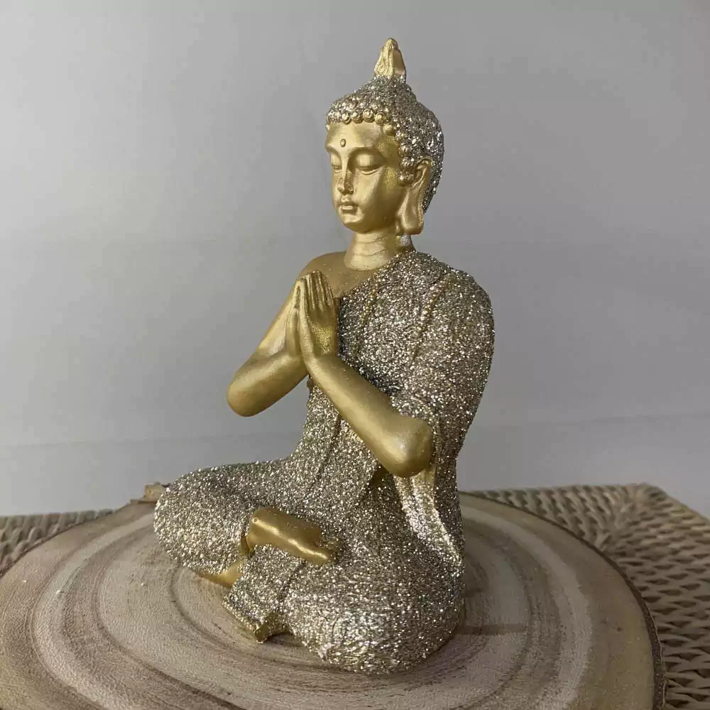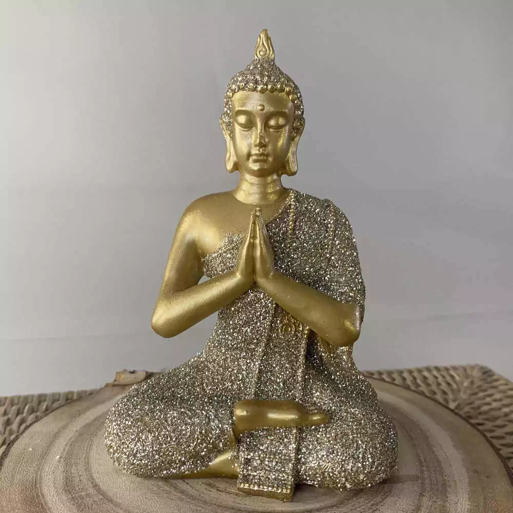 A cor dourada está ligada ao Sol, à riqueza, fartura, poder e energia. Transformando esse Buda dourado em um poderoso amuleto de prosperidade.