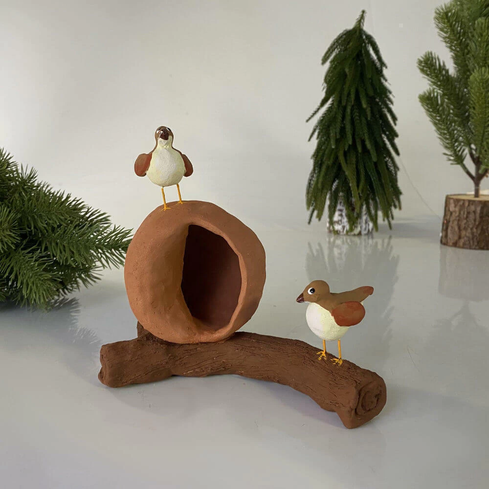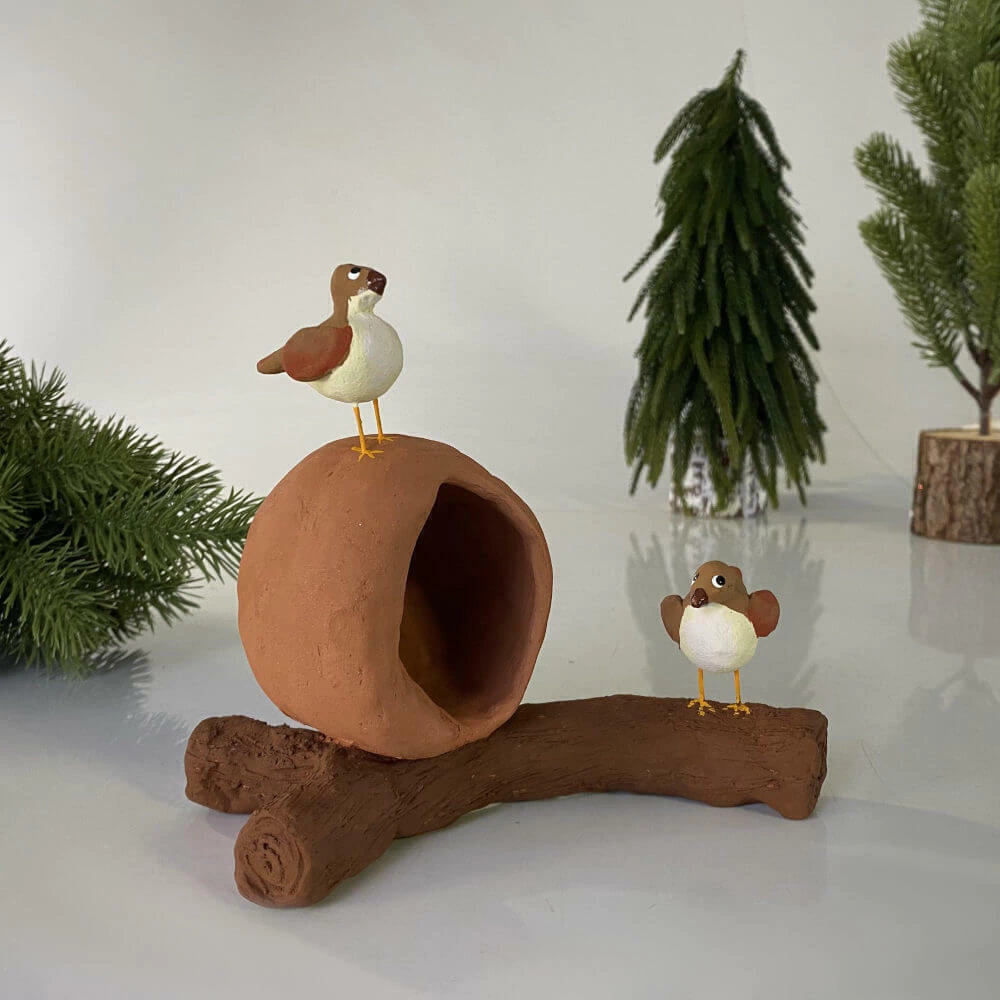 Inspirada na ave símbolo do lar e da perseverança, esta peça feita à mão representa o João-de-barro e sua icônica casinha de barro. Cada detalhe celebra a força da natureza e a sabedoria desse passarinho que constrói com paciência o seu ninho, tijolo por tijolo, sempre voltado para proteger sua família.