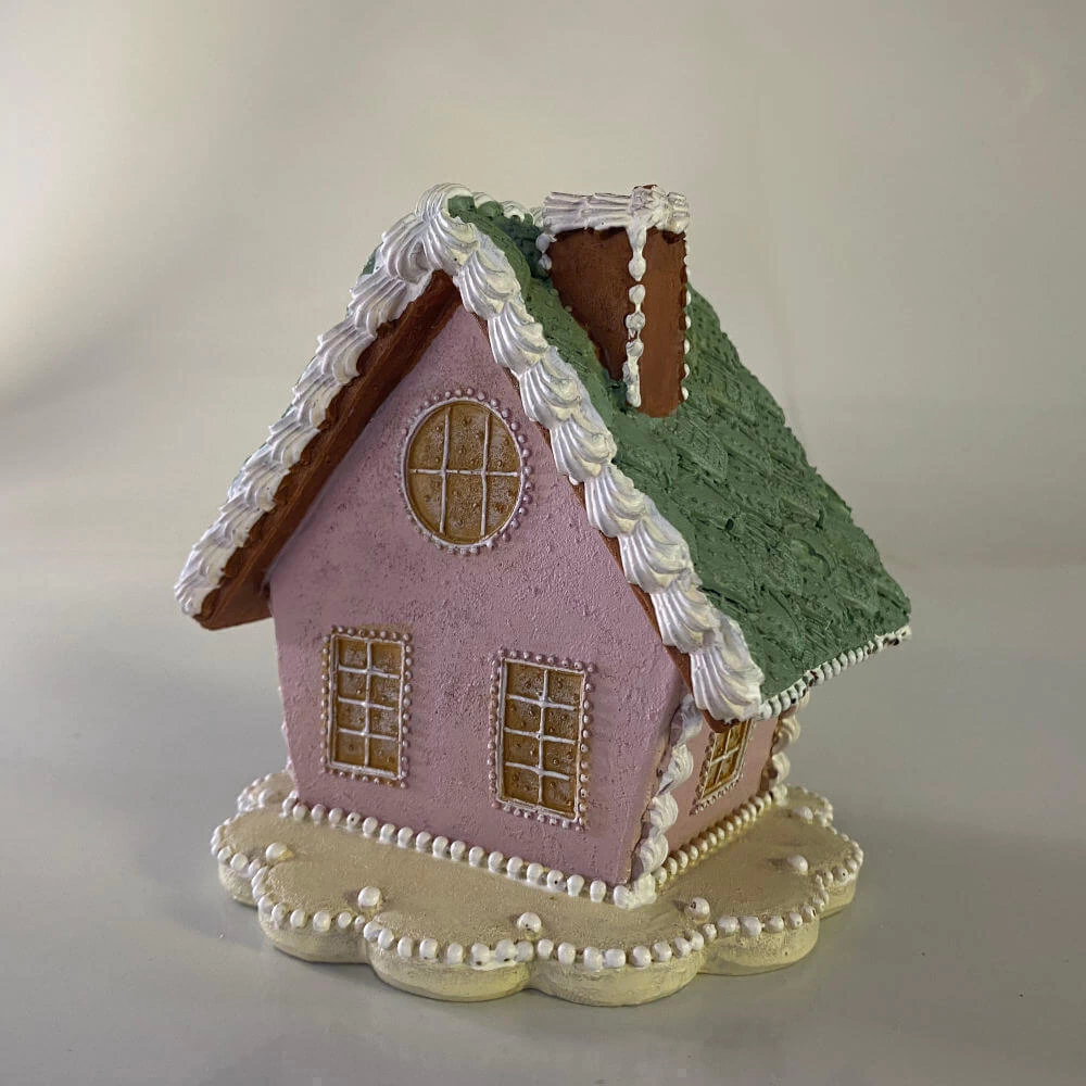 Com tons candy colors, rosa suave, verde claro e outras cores pastéis, a peça traz um ar lúdico e acolhedor, encantando adultos e crianças. Feita em resina, é perfeita para compor vilas natalinas, decorar vitrines de confeitarias e docerias ou alegrar o ambiente com um toque doce e mágico.