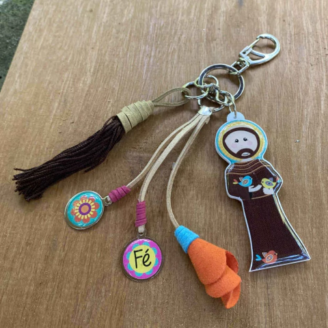 Um lado a imagem de são Francisco com pombinhas e no outro a frase "Comece fazendo o que é necessário, depois o que é possível e de repente você estará fazendo o impossível".