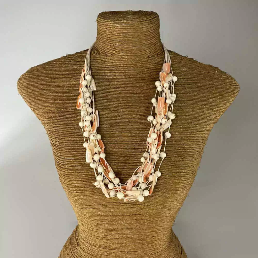 Feito com produtos naturais, açaí e conchas naturais, esse colar encanta.