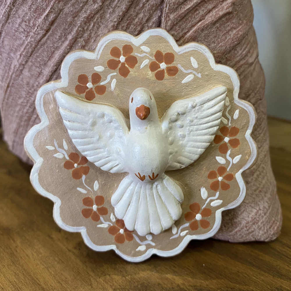Escultura do Espírito Santo em barro, moldada à mão pelas talentosas artesãs do Vale do Jequitinhonha.