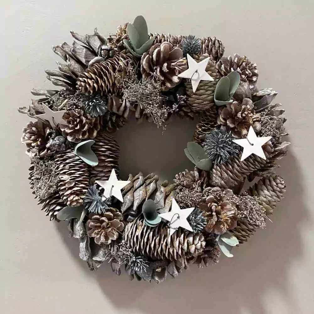 Por se tratar de uma peça feita de forma artesanal, com produtos naturais, existe variação de tamanho e pinhas de peça para peça.