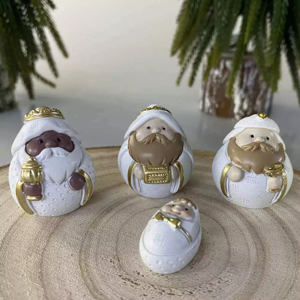 O presépio é composto por 10 peças: Maria, José, menino Jesus, anjo, pastor, 3 reis magos e 2 bichinhos. Difícil saber qual personagem mais fofo.