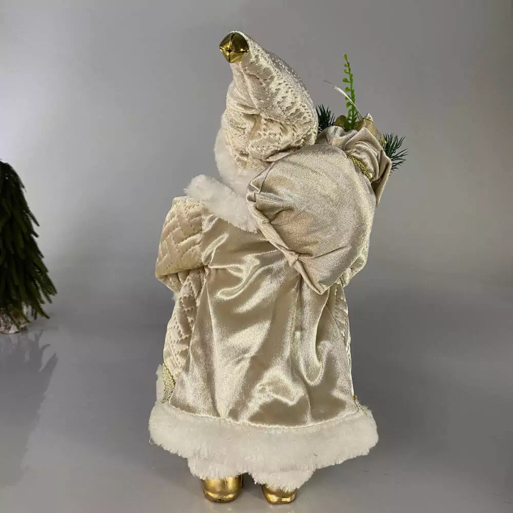Senhor Noel com sua roupa de festa mais glamourosa. Em tons de branco, champanhe e detalhes em dourado.