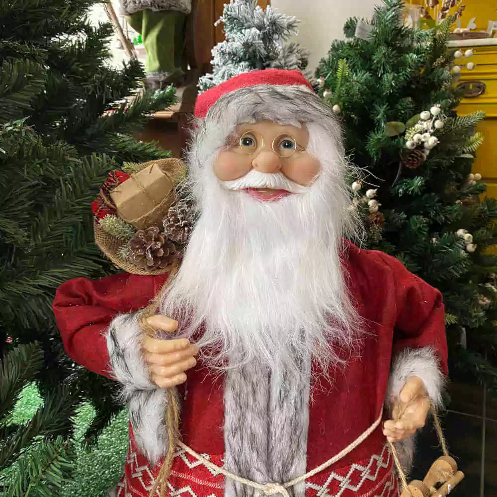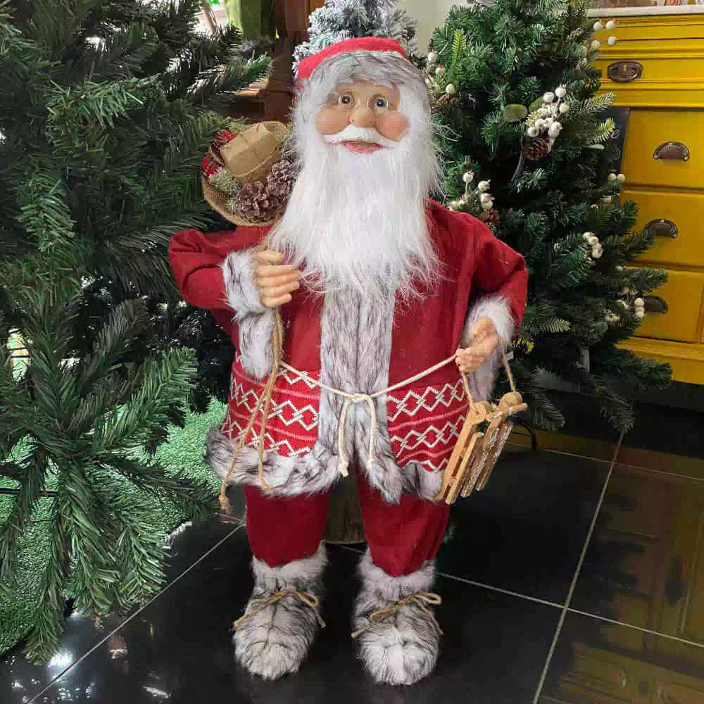 Boneco do Papai Noel com roupa vermelha tradicional.