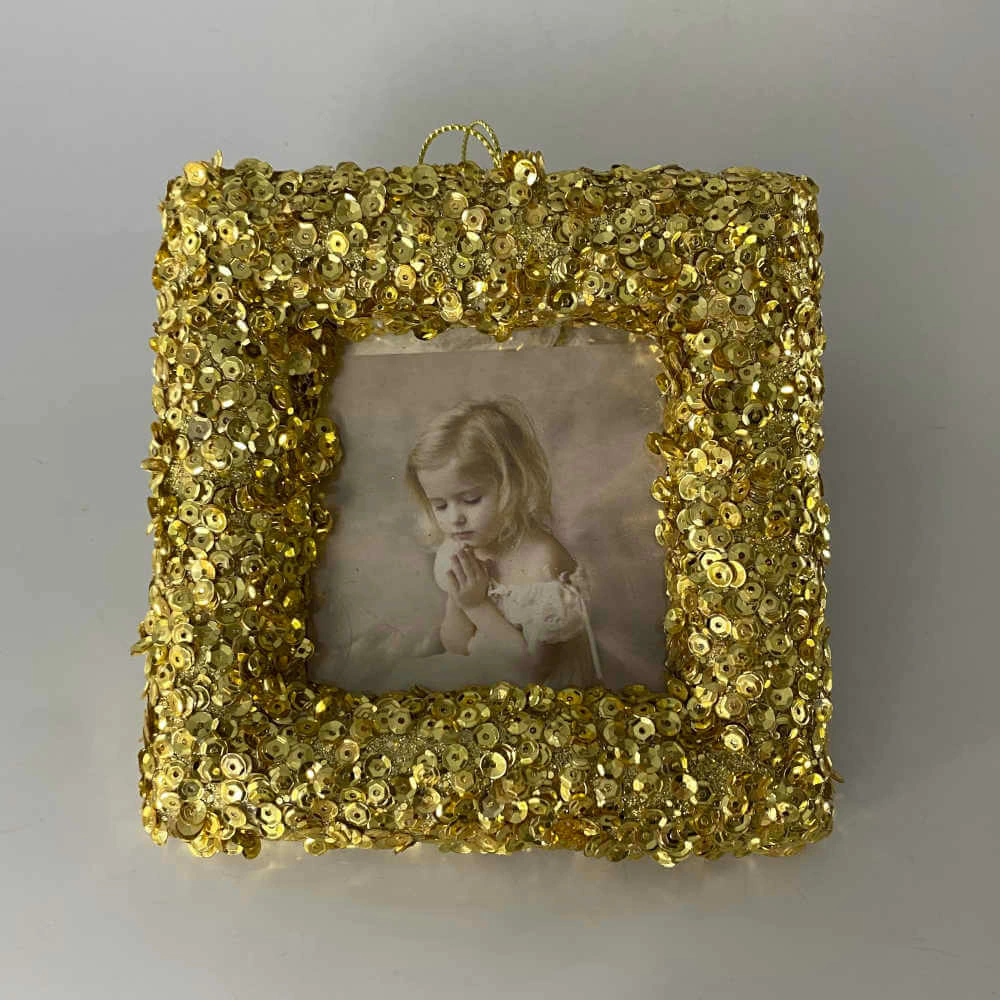 Porta retrato para árvore de natal dourado.