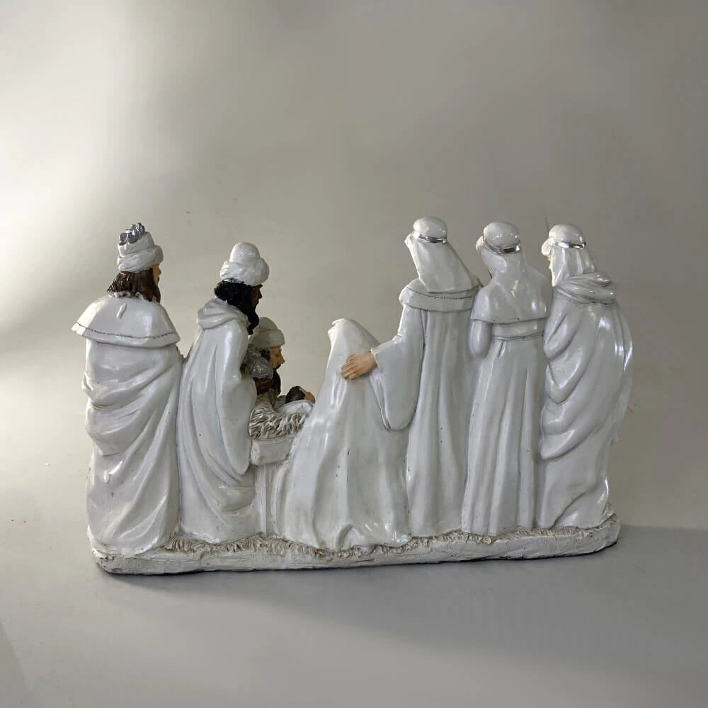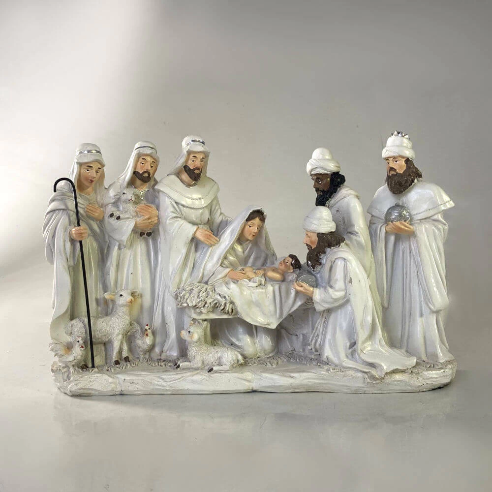 De acabamento branco e traços tradicionais, este presépio transmite toda a beleza e a espiritualidade do nascimento de Cristo. É um presente especial e significativo, perfeito para oferecer a uma mãe, avó, chefe ou alguém que merece uma lembrança sofisticada e cheia de simbolismo. Uma peça clássica, que une tradição, devoção e emoção em cada detalhe.