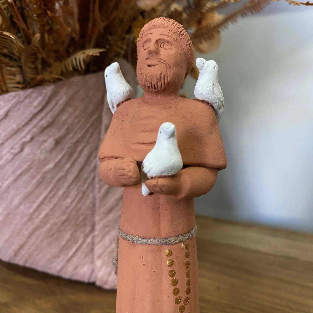 Imagem de São Francisco artesanal em barro, simples com São Francisco.