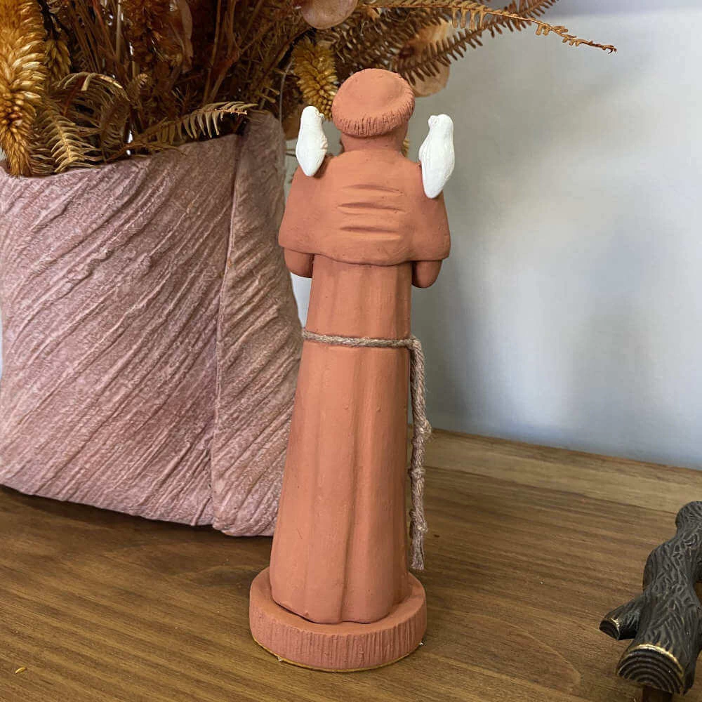 Imagem de São Francisco artesanal em barro, simples com São Francisco.