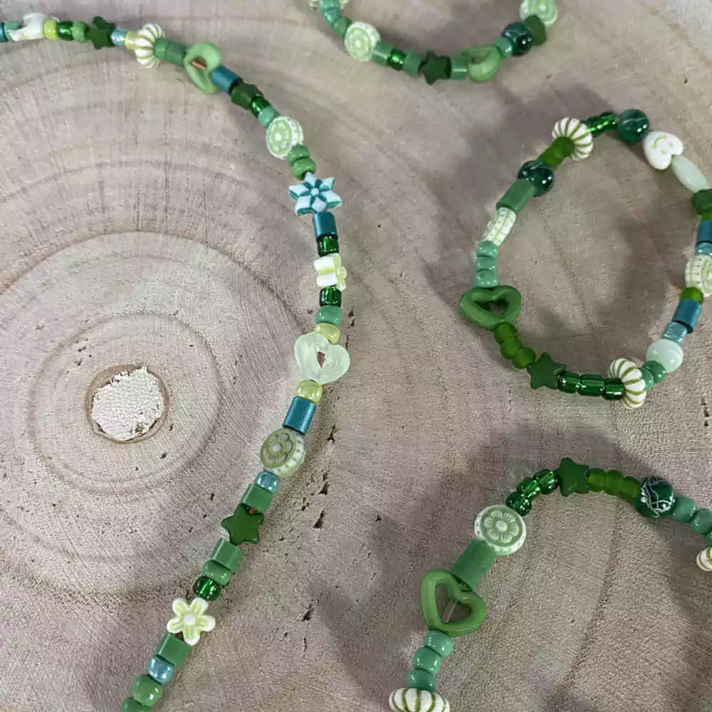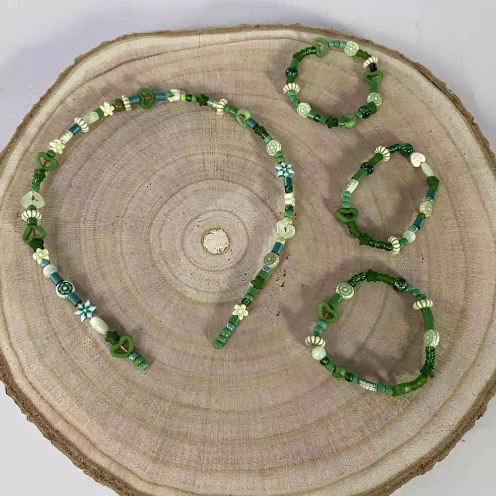 Nos tons de verde, esse conjunto de acessórios infantil, é um charme para usar numa festinha ou com aquele vestidinho divertido no final de semana.